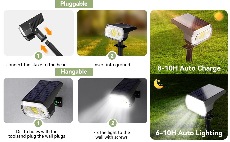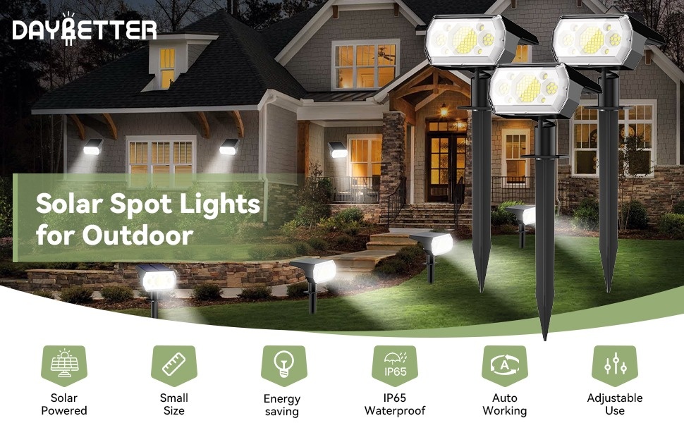 DAYBETTER Solar Lights Outdoor, IP65 Waterproof 64LEDs Solar Spot Lights with 3 Modes for Garden Yard Patio Driveway Walkway (6pack-White )